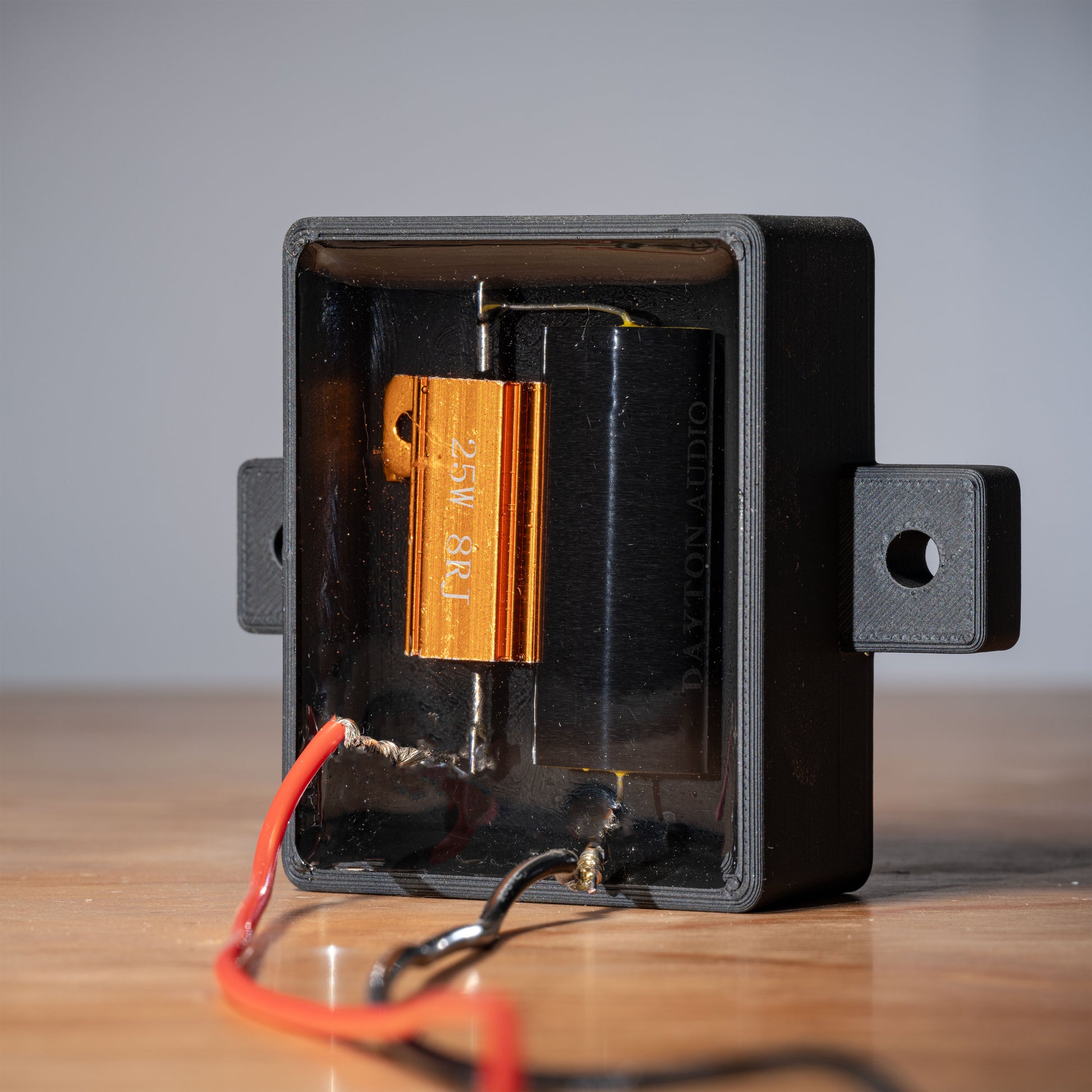 For accurate performance, we tune each Zobel to your specific woofer. Please provide the make and model of your woofer when ordering. If that information isn’t available, we can closely approximate the tuning by measuring the woofer’s size and DC resistance.
